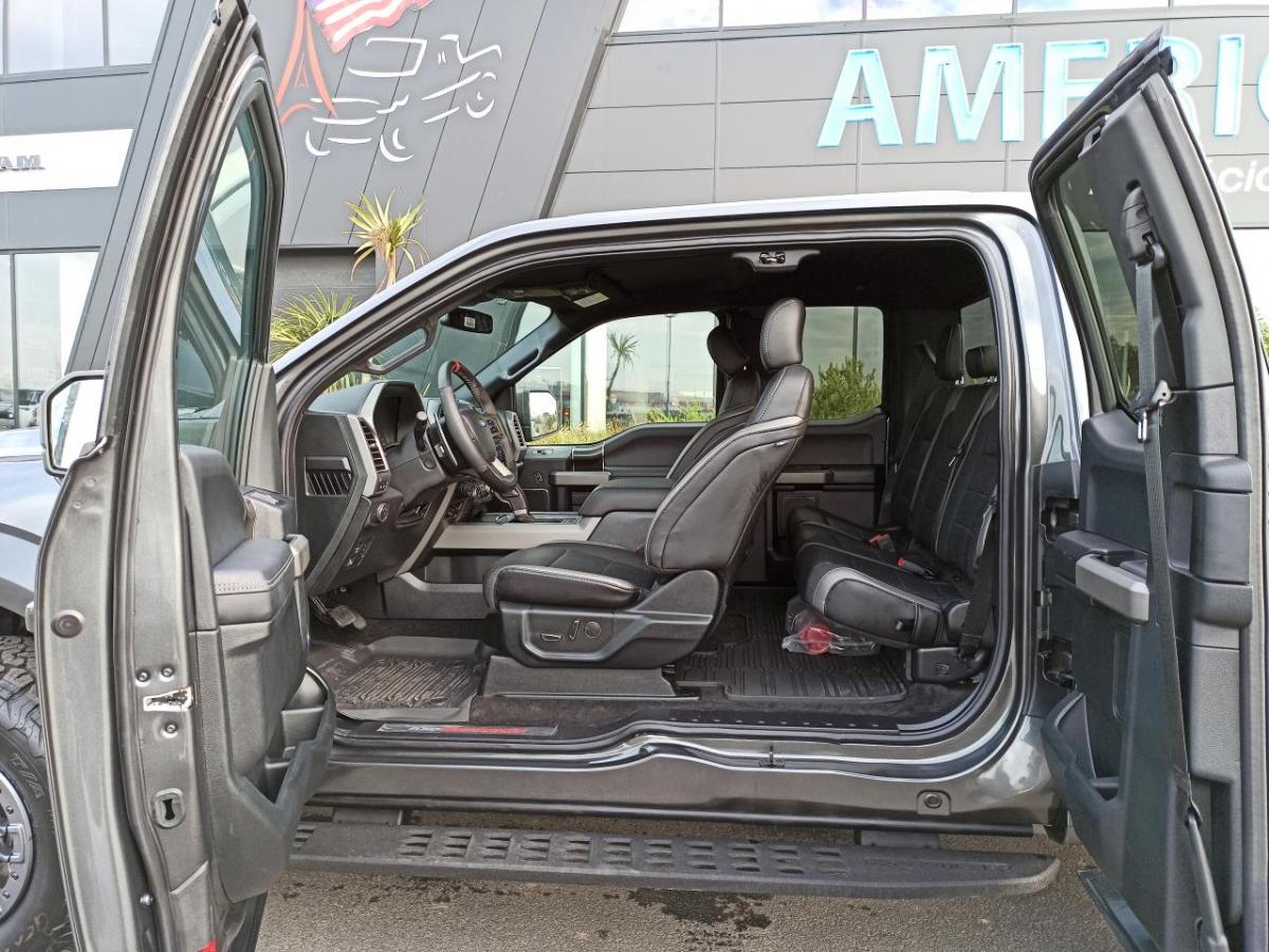 V6 3.5L EcoBoost Haute Performance 450 chevaux / Transmission automatique 10 vitesses avec palettes au volant / 4x4 / 6 modes de conduite différents /Jantes 17 pouces beadlocks en alu forgéavec pneus LT315/70R17 BSW All/Terrain (A/T) Tires / Pont arrière autobloquant ratio 4.10 / Pont avant 4.10 avec différentiel Torsen /Aide au maintien de voie/Caméra 360 degrés/ Climatisation automatique bizone / Commandes au volant / Contrôle de descente / Contrôle de pression des pneus / Démarrage à distance /Détecteur d'angle mort/Détecteur de pluie/Détection de ligne blanche/ Direction assistée / Eclairage latéraux / Entrée sans clé / Fermeture centralisée / Pack Luxury plus / Pédalier ajustable électriquement / Radar de recul /Régulateur de vitesse adaptatif avec anticollision/ Rétroviseurs électriques, dégivrants, à mémoire / Rétroviseurs rabattables électriquement / Sellerie cuir spécifique au Raptor / Sièges conducteur électrique 8 réglages / Sièges chauffants / Sièges ventilés / Suspensions Fox Racing ? High Performance Off/Road / Vitres électriques / Vitres Teintées / Volant Chauffant/ ABS / Airbag Conducteur / Airbag Passager / Airbags Latéraux /Alarme / Antibrouillards / Antidémarrage / ESP / Feux Automatiques/ AM/FM avec lecteur CD / Apple CARPLAY / Bluetooth / Boussole / Commandes au volant / Ecran tactile 8 pouces / Entrée Auxiliaire / GPS US (GPS Europe en option) / MP3 / Ordinateur de bord / Prise 110V / 400W /Système de son Bang & Olufsen 10 hauts parleurs/ USBx2 / Attelage avec barre de tir /Eclairage latéraux / Gros logo FORD sur hayon arrière / Hayon à ouverture à distance / Lumière de benne / Marchepieds latéraux /Pack graphique capot / Pack graphique ailes /Protection de benne en spray projeté