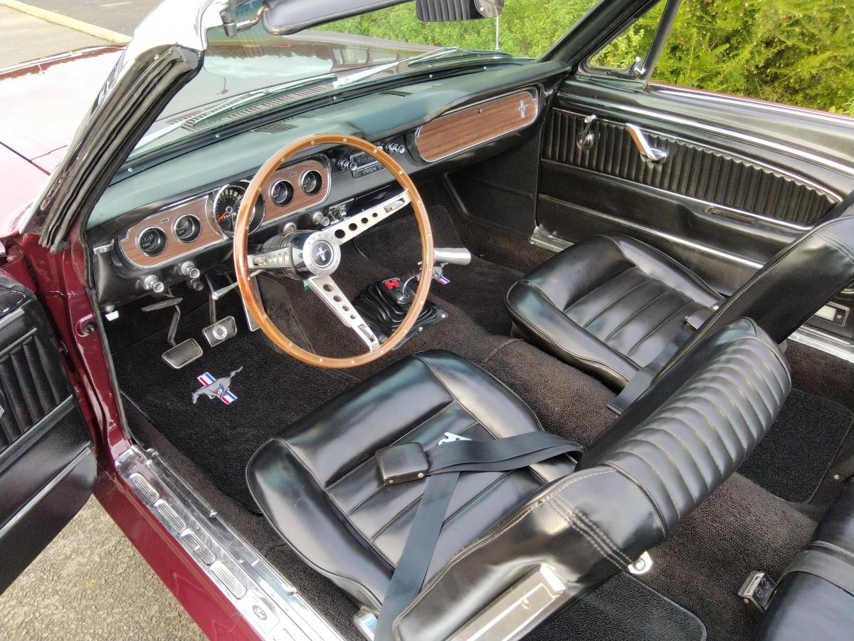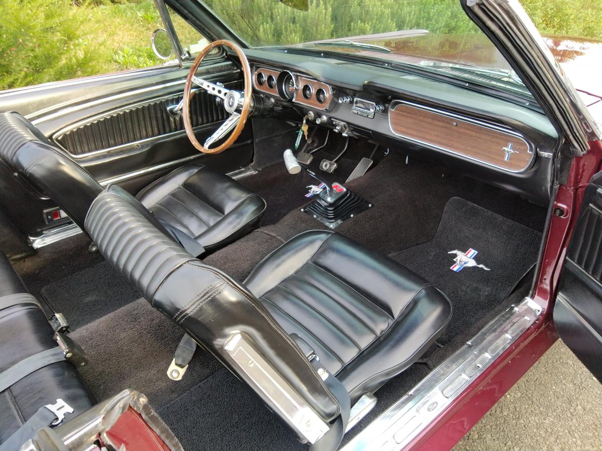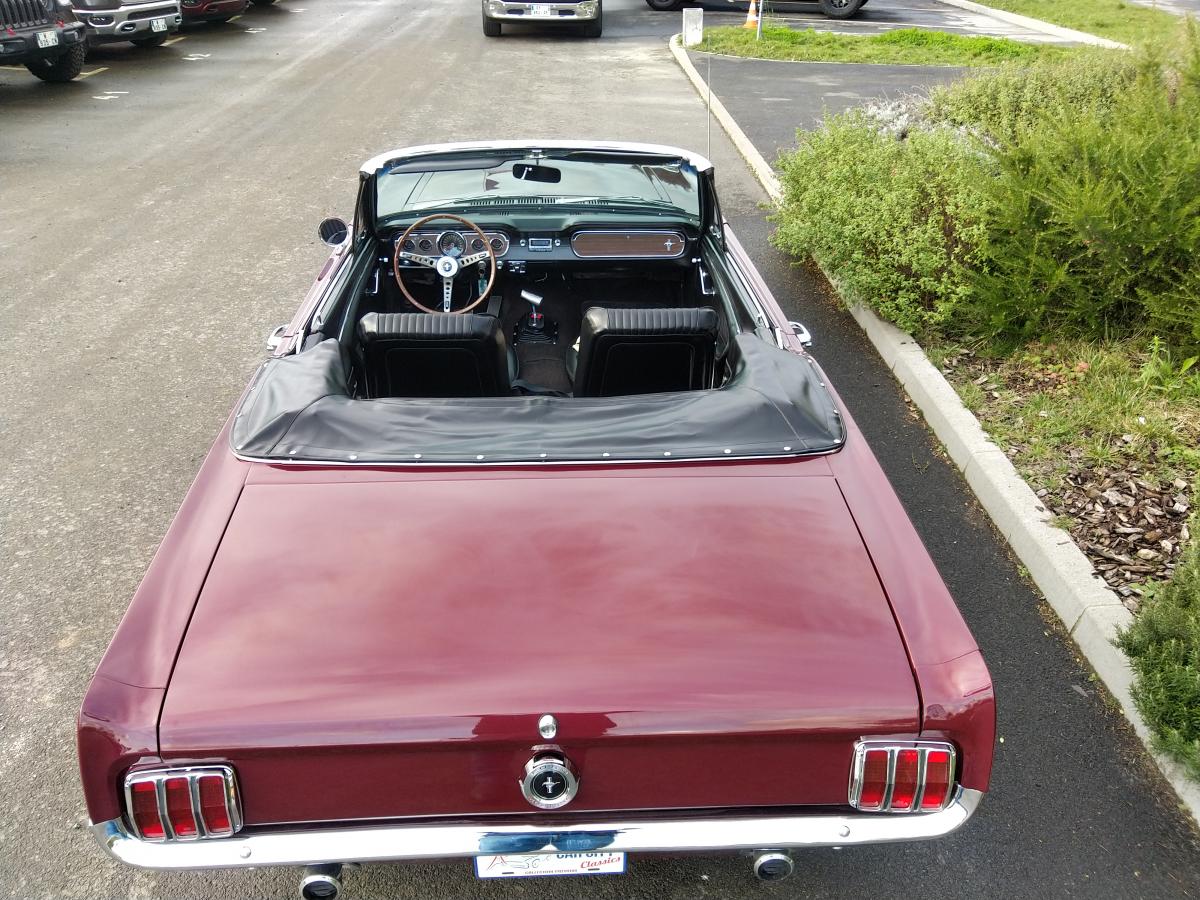 Véritable ET TRES RARE Mustang GT 1965 convertible, dans sa livrée Vintage Burgundy d'origine